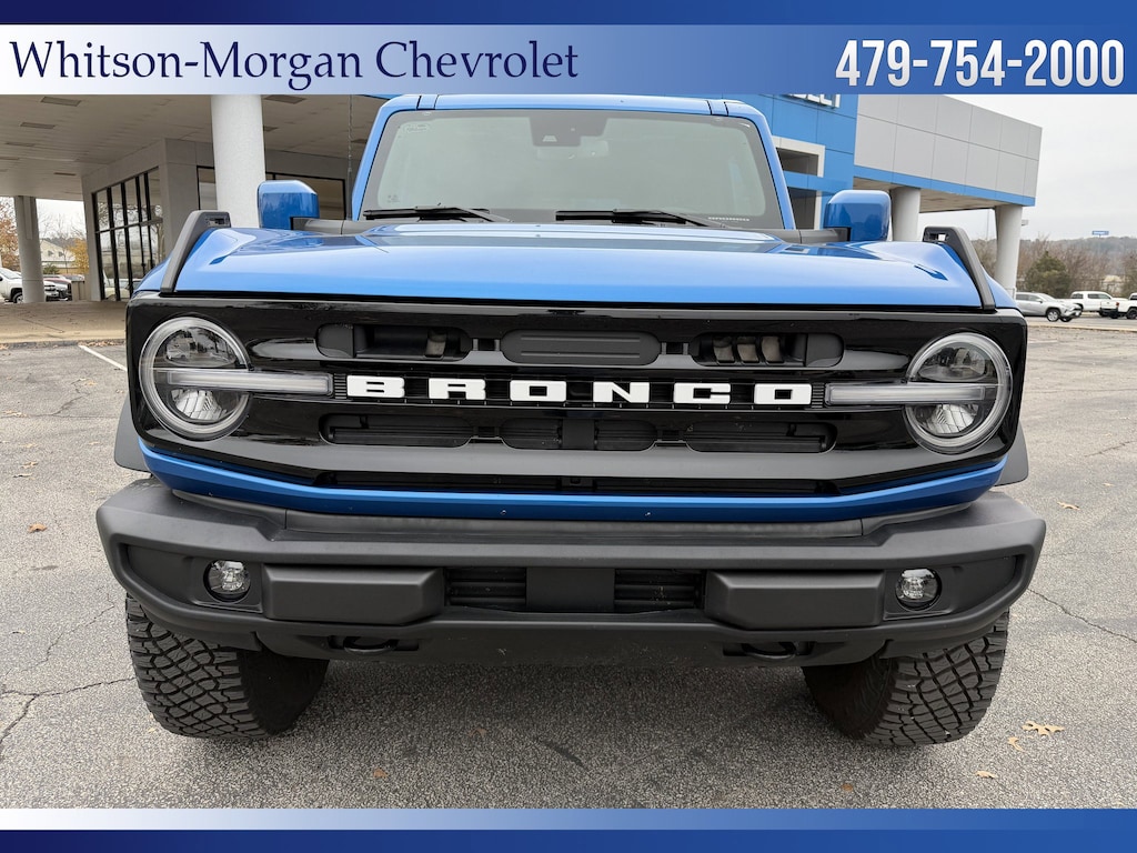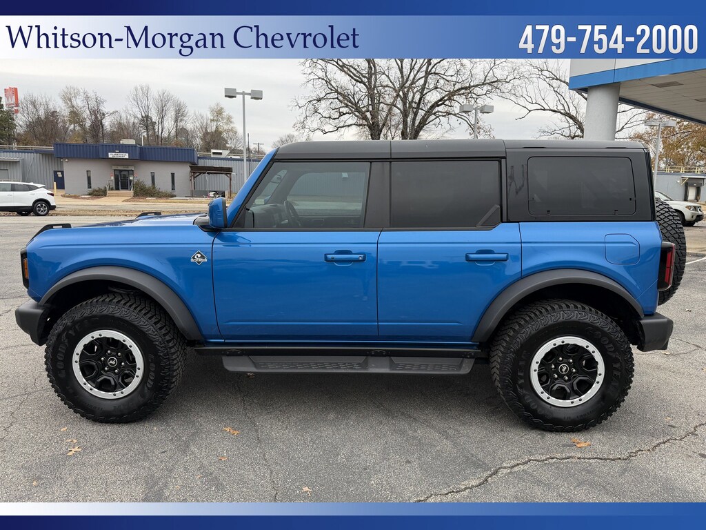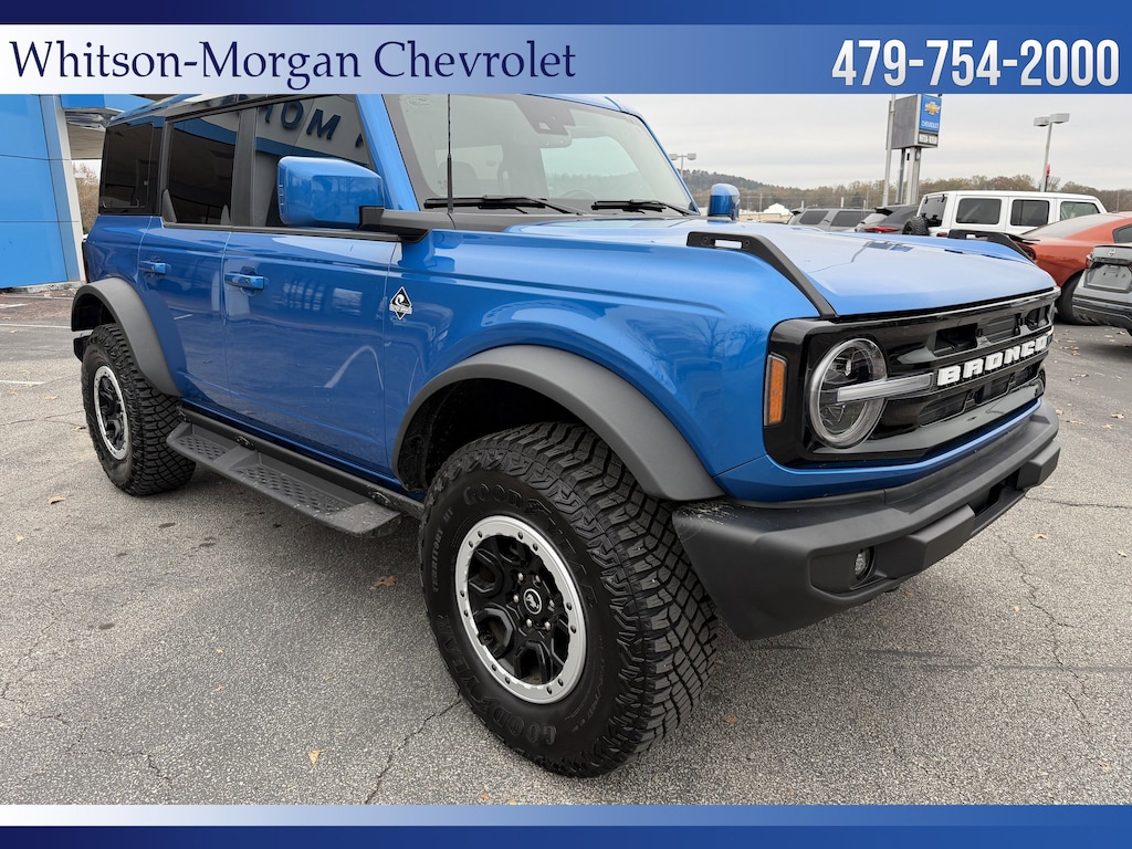 **2024 Bronco Outer Banks 4wd ** Sasquatch Pkg ($7460 option) ** Navigation ** 2 Tone Leather Interior ** Hardtop ** 12 Inch Center Touchscreen, Apple Carplay, Android Auto, Sync4, Satellite Radio, Bluetooth, Ford Pass Connect w/ 4G Wifi ** Factory 35 Inch Mud Terrain Tires, 17 Inch Beadlock Wheels, Front & Rear Axle Lockers ** Raptor Style Running Boards ** Ford Co Pilot 360 w/ Blind Spot Monitoring, Lane Keep Assist, Forward Collision Avoidance w/ Auto Emergency Braking, Pedestrian Detection, Rear Cross Traffic Alert, HD Rear Vision Camera ** Dual Power Front Seats ** Remote Vehicle Start ** Terrain Management System w/ G.O.A. T Mode ** Trailer Tow Pkg ** Safe Deposit Console Lock Box ** Dual Zone Auto Climate ** LED Headlights, LED Taillights, LED Running Lights ** Velocity Blue Exterior ** VERY Sharp and VERY Aggressive Bronco **