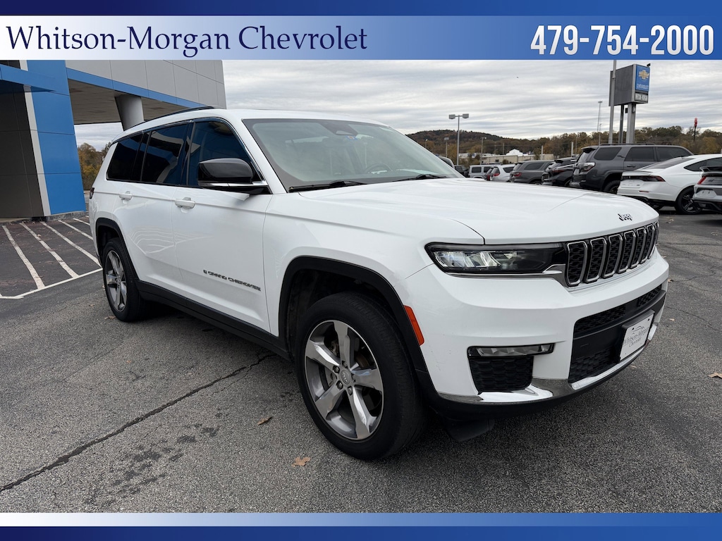 **2021 Grand Cherokee L Limited 4wd ** Panoramic Dual Pane Sunroof ** Navigation ** Factory 20 Inch Alloy Wheels ** Premium Leather Interior w/ Quad Bucket Seating & 3rd Row Seating ** Heated First & 2nd Row Seats ** Uconnect 5 w/ 10.1 Inch Touchscreen, Navigation, Apple Carplay, Android Auto, Satellite Radio, Bluetooth, 4G Wifi ** Adaptive Cruise Control w/ Auto Stop & Go ** Full Speed Forward Collision Warning Plus, Blind Spot Monitoring, ParkSense Rear Sensors w/ Rear Vision Camera, Advanced Brake Assist, Pedestrian & Cycling Detection w/ Emergency Braking, Active Lane Management System ** 8 Way Power Driver & Passenger Seats w/ Driver Memory ** Power Liftgate ** Remote Vehicle Start ** Select Terrain Management System w/ Adjustable Driving setups ** LED Headlights & LED Taillights ** Interior Rear-Facing Camera ** Trailer Tow Group w/ Trailer Hitch Zoom ** Rear Load Leveling Suspension ** Tri Zone Automatic Climate Control ** Global White Exterior Color w/ Beige Interior ** A LOT of Vehicle for the Money**