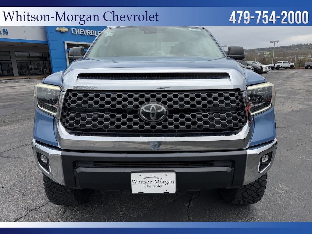 ** Lifted 2019 Toyota Tundra Crew Cab 4wd SR5 w/ TRD Offroad Pkg in Cavalry Blue ** Rough Country Suspension Lift (raises the truck approximately 4-6 inches) with Black, Aftermarket 20 Inch Alloy Wheels by Fuel and 35-12.50-20 Inch Mud Terrain Tires ** SR5 Upgrade Pkg ** Convenience Pkg ** Blind Spot Monitoring, Pre Collision Avoidance w/ Pedestrian Detection, Lane Departure Warning, Rear Cross Traffic Alert, Front & Rear Park Assist Sensors w/ Rear Vision Camera ** Intelligent Radar Cruise Control ** Aftermarket Black Fender Flares ** Chrome Tube Steps ** Front Captain's Chairs w/ Center Console & Power Driver's Seat ** Aftermarket Tonneau Cover ** Aftermarket Audio System ** Trailer Tow Hitch ** Remote Keyless Entry ** 5.7L V8 ** Spray In Bedliner ** VERY Sharp & HIGHLY ACCESSORIZED TRD ** GREAT COLOR